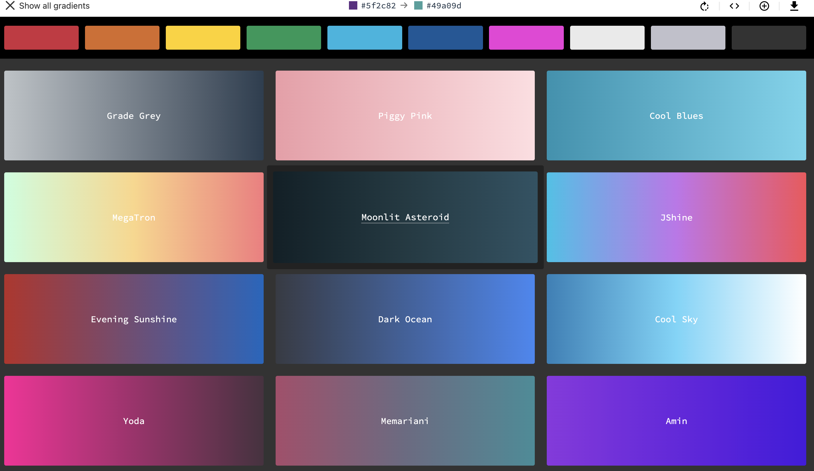 디자이너 없이 1인 개발을 하다보면, 앱 아이콘, 스플레시 이미지, 아이콘 등 여러 디자인 요소를 혼자 만들어 내야 할때가 있다. 그 중 색조합은 정말 어려운데, 그라데이션 색상 으로 대표 색상 3-4가지를 선택하면 메인컬러 서브 컬러 등 색 조합을 보다 디자이너 처럼 할 수 있다.. ㅎㅎ 그럼, 그라데이션 색 추천 해주는 사이트를 소개 하겠다. 1. https://uigradients.com/#CalmDarya uiGradients - Beautiful colored gradients uiGradients is a handpicked collection of beautiful color gradients for designers and developers. uigradients.com 이렇게 기본 색상..